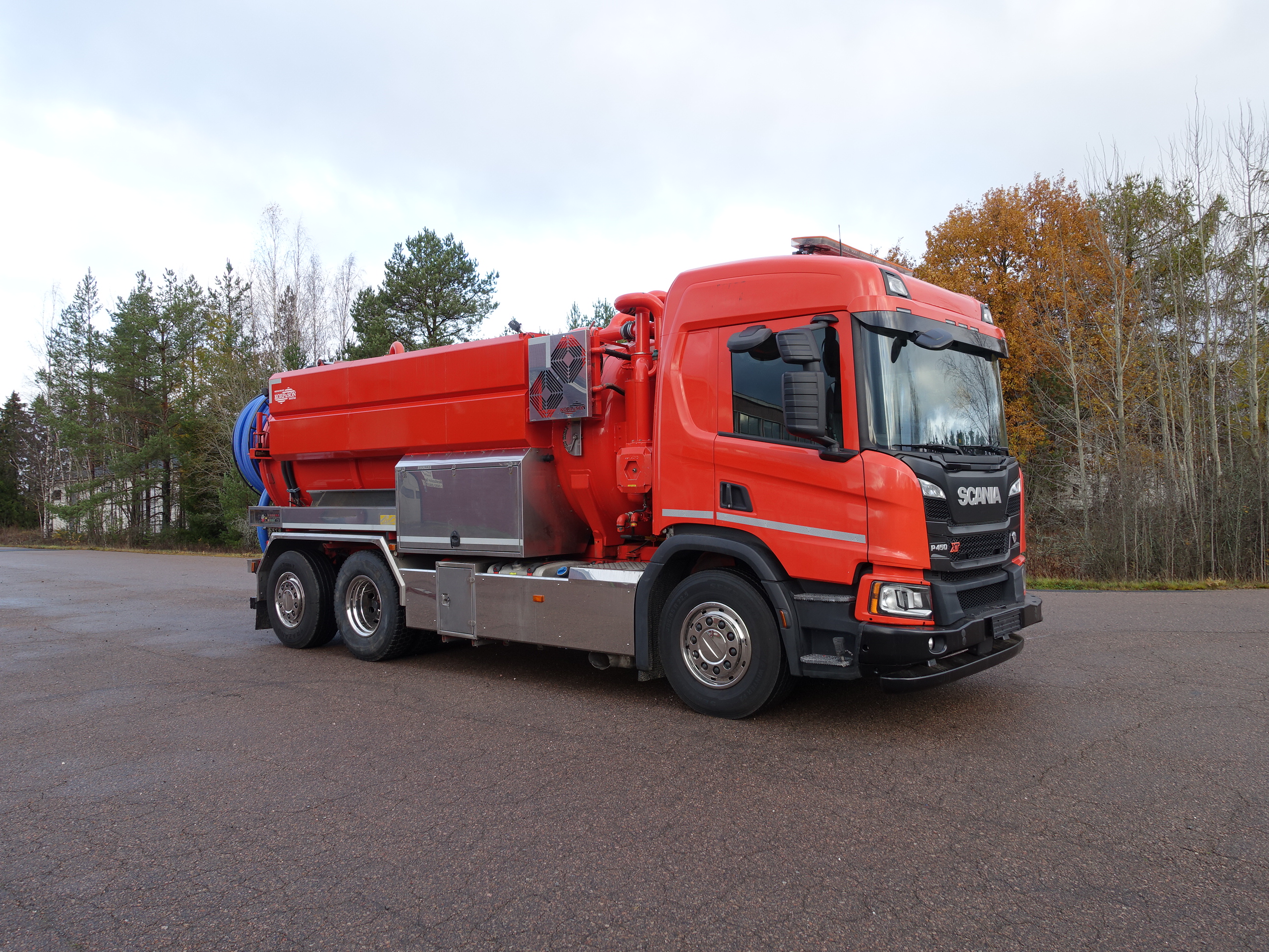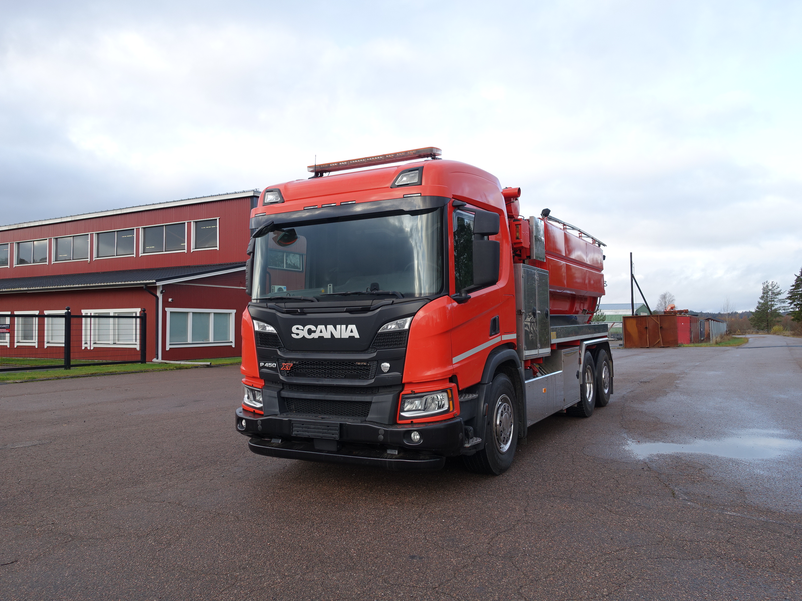 SCANIA P450 XT 6x2*4 vm 2019 Euro 6, loka 13m3, vesi 3 m3, Pratissoli KF 30 110lit/min 210bar, avausletkut 1/2" 80m, kauko-ohjattu, kokoperäaukeava, hydrauliset letkukelat, vesilaitteet lämmitetyssä kaapissa, lämmitetyt imu- ja purkuventtiilit, katsastettu,yms.